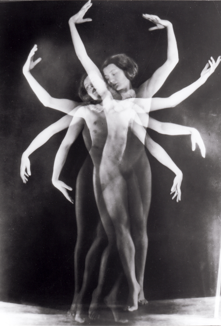 Nur über die wenigsten biographischen Daten zum Leben der Photographin Yva haben wir Gewissheit. Vermutlich hat sie eine dreijährige Lehre im Atelier der Meisterphotographin Suse Byk (1884-1943) absolviert; so jedenfalls heißt es in den Erinnerungen der Fotografin Liselotte Strelow. Yva folgte mit ihrer Berufswahl einem Zug der Zeit nach dem Ersten Weltkrieg, als junge Frauen neue Berufe ergriffen und erstmals selbständig ein Geschäft führen durften. Das Atelier Yva in der Friedrich-Wilhelm-Straße Nr. 17 (heute Klingelhöferstraße), zwischen Lützowplatz und Tiergarten-Viertel gelegen, gehörte 1925 unter den von Photographinnen geführten Ateliers zu den ersten in der Stadt. Yva spezialisierte sich von Anfang an auf Gebrauchsphotographie, auf die Veröffentlichung in der Presse, d.h. die Zulieferung an Illustrierte und Magazine. Neben den Mehrfachbelichtungen, an denen sie bis 1929 mit immer neuen Ideen arbeitete, entstanden Aufnahmen von Genremotiven und Ende des Jahrzehnts konzentrierte sie sich zunehmend auf Mode- und Werbephotographien. In der Presse ließen sich die Motive häufig auch genreübergreifend verwenden, zum Beispiel Schmuckaufnahmen als Bildnisse oder Doppelbelichtungen, in denen nur ein Detail ergänzt werden mußte, um aus einer Faschingsszene eine Gefängnissituation zu machen. Gern gesehen waren Bilder aus der Welt der Revue, ohne die in den Zwanzigern Unterhaltung nicht denkbar war. So bediente Yva mit Aufnahmen wie „Sisters G.“ den Geschmack des Publikums. Technisch perfekt in der Art ihres „synoptischen“ Verfahrens einer Mehrfachbelichtung gearbeitet, resultiert die bis heute ungebrochene Ausdruckskraft aus der kompositorischen Ausgewogenheit und dem Wiedererkennungseffekt der klischeehaften Bildzitate: Frauenköpfe mit üppigen Hüten und Federboas, leichtbekleidete, beine-schwingende Girls mit Stöckelschuhen. In bildbeherrschender Diagonale sind die Großaufnahmen der Gesichter aus verschiedenen Perspektiven gesehen, und die von unten ins Bild ragenden Beine, eine Anspielung auf die Tillergirls, unterstreichen die Dynamik des Sujets.